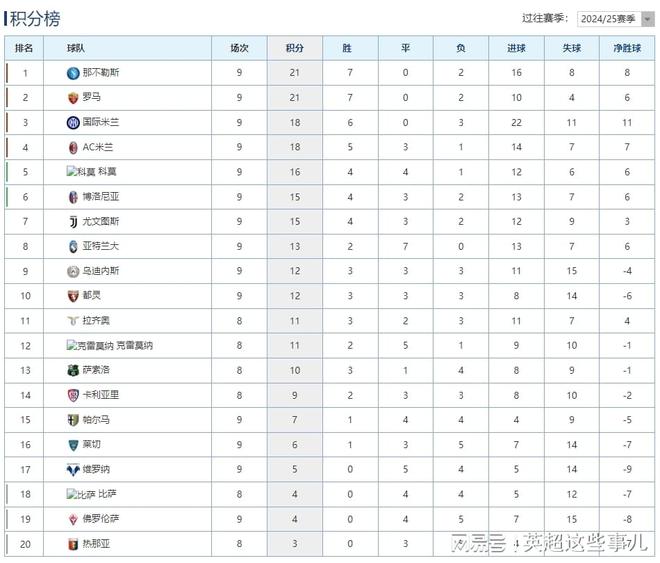从昨晚到今天早上,意甲第九轮比赛一直是一场激烈的战斗。国际米兰主场3-0战胜佛罗伦萨。卡尔哈努尔以两粒进球高居进球榜榜首。新助教苏西奇打入意甲首球,罗马主场2-1击败帕尔马。由于净胜球劣势排名第二,埃尔莫索和多夫比奇各进一球。尤文图斯主场3-1击败乌迪内斯,终结八连胜。布拉霍维奇和伊尔迪兹点球射门,加蒂头球破门。罗马主场2-1击败帕尔马,排名联赛第二。上半场两队都没有取得什么成绩,机会也很少。第63分钟,迪巴拉开出角球,埃尔莫索远射头球攻门。铃木爱彦摔倒了,只能眼睁睁地看着球入网。第81分钟,罗马继续传球到禁区,多夫维克低射破门,扩大比分。第86分钟,帕尔马再进一分球从左侧送入禁区,奇卡蒂射门。最终,罗马主场获胜,前九场七战全胜,队史第六次获胜。尤文图斯主场3-1击败乌迪内斯,终结八连胜。比赛进行到第5分钟,布拉霍维奇中路被超车,主裁判判罚点球。布拉霍维奇主罚点球取得领先。补时阶段,乌迪内斯射门被挡出,扎尼奥洛出人意料的射门将比分扳平。第67分钟,坎比亚索右路传中,加蒂头球攻门。第96分钟,耶尔迪兹再进一球并亲自主罚命中锁定胜局。其他比赛中,国米主场3-0击败佛罗伦萨,恰尔哈努尔梅开二度,苏西奇打进加盟国米以来的首粒进球。博洛尼亚主场0-0战平都灵,克雷莫内斯客场2-0击败热那亚,博纳佐利梅开二度。